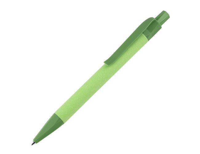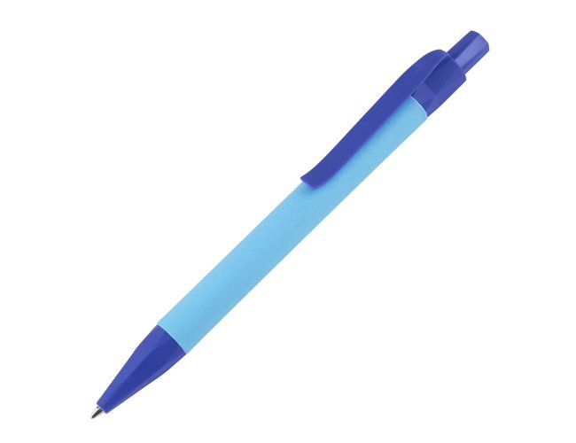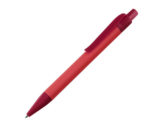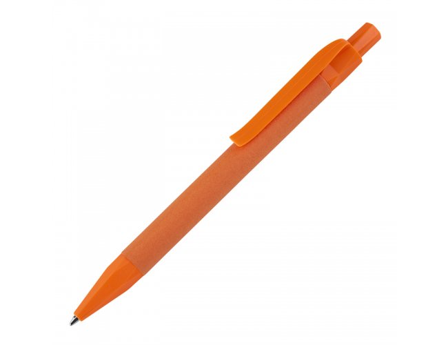 Acompanha caneta produzida em papel reciclado colorido com detalhes em plástico PLA biodegradável.