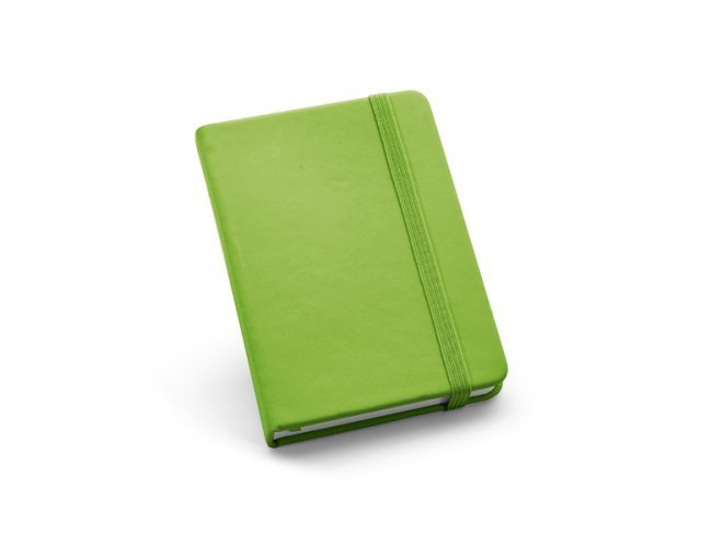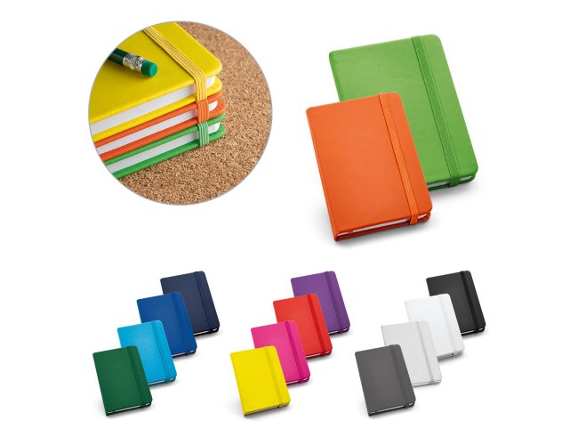 Caderno de bolso com 80 folhas não pautadas, capa dura em c. sintético, fita separadora e elástico. 90 x 140 mm