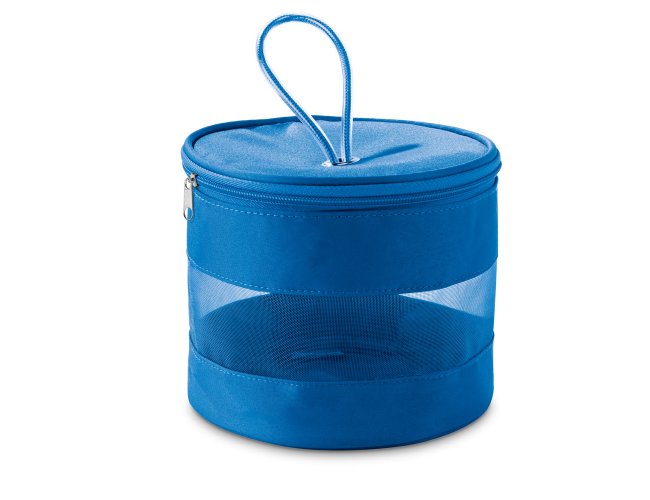Bolsa de cosméticos. Microfibra e tela. ø155 x 145 mm