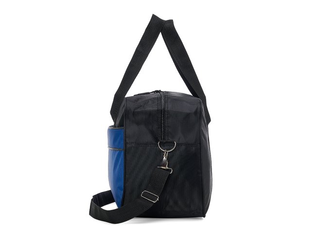 Bolsa de poliéster impermeável com capacidade de 33 litros. Possui compartimento principal com amplo espaço e um pequeno bolso interno para acessórios, além de um bolso frontal longo. A bolsa contém alças de nylon para mãos, alça transversal regulável, duas fivelas superiores para encaixe da alça transversal, zíperes com puxadores emborrachado e revestimento interno de poliéster.