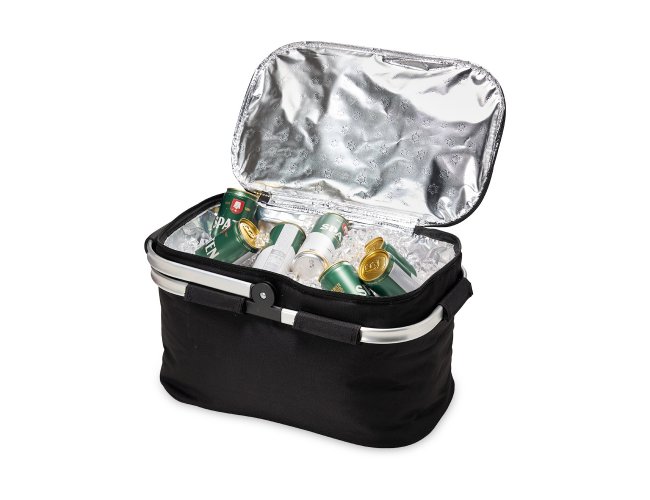 Descrição: Bolsa térmica de poliéster com capacidade de 33 litros, revestimento térmico com costura soldada (não vaza). Contém armação de transporte removível em alumínio com pegador emborrachado.