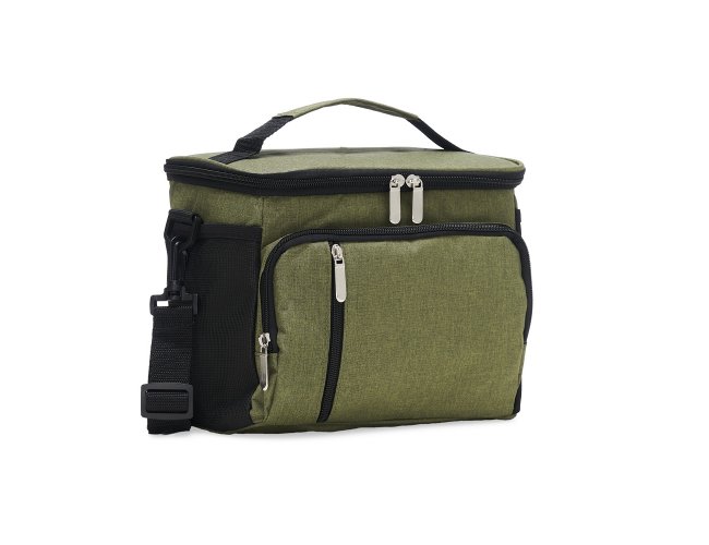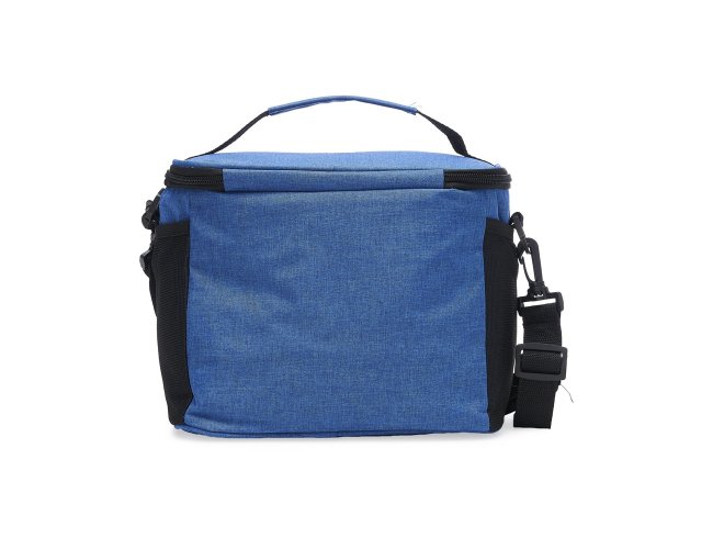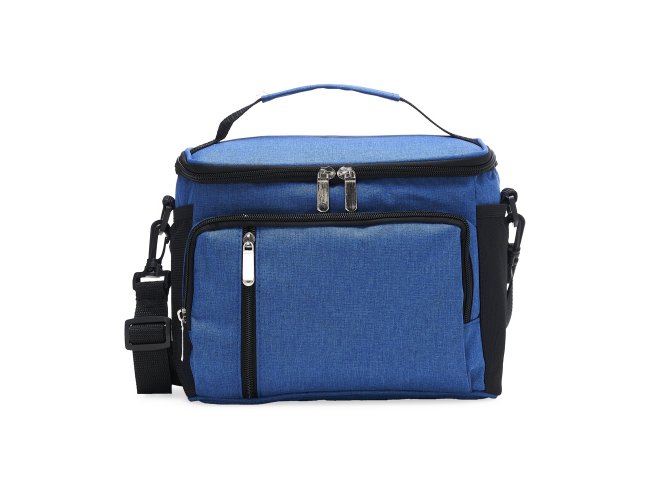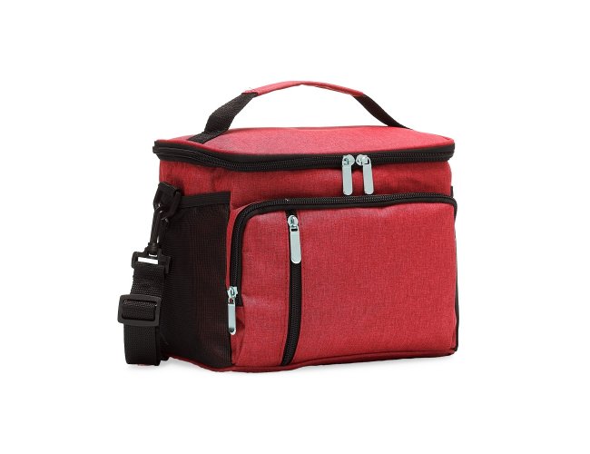 Descrição: Bolsa térmica de poliéster com três compartimentos, capacidade de 9 litros. A bolsa possui revestimento térmico em PEVA atóxico com costura soldada (não vaza), alça de mão, bolsos laterais telados e acompanha alça transversal.