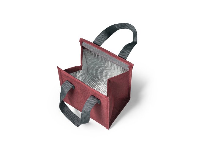 Bolsa térmica em 300D de alta densidade com pegas em webbing. Contém 1 compartimento principal com fecho aderente. Capacidade até 2.5 L. 170 x 220 x 130 mm