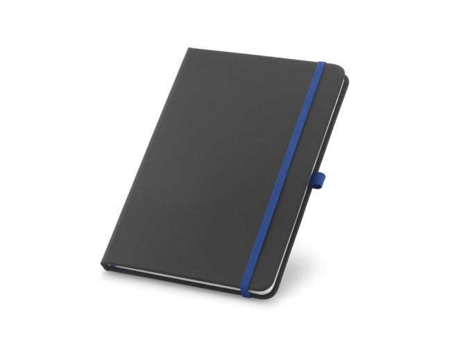 Caderno A6 com capa dura em c. sintético e 80 folhas pautadas. 90 x 140 mm.