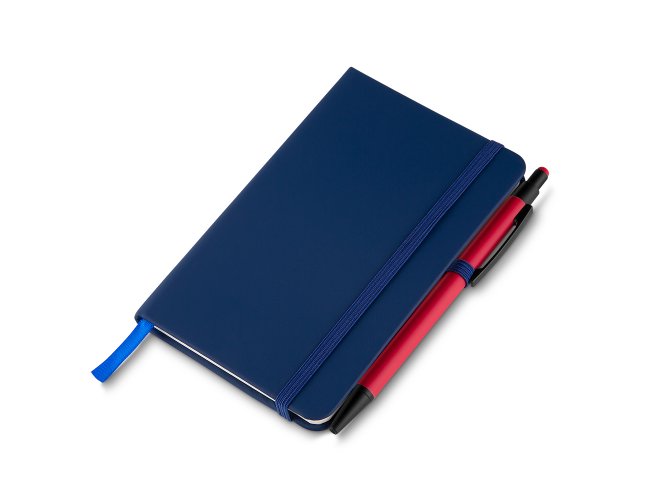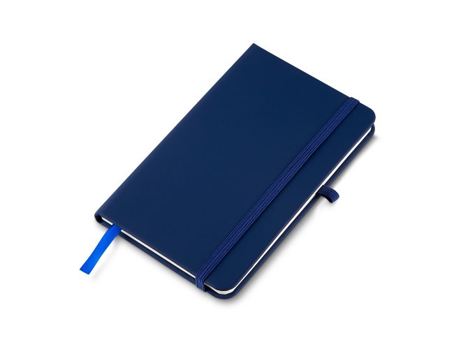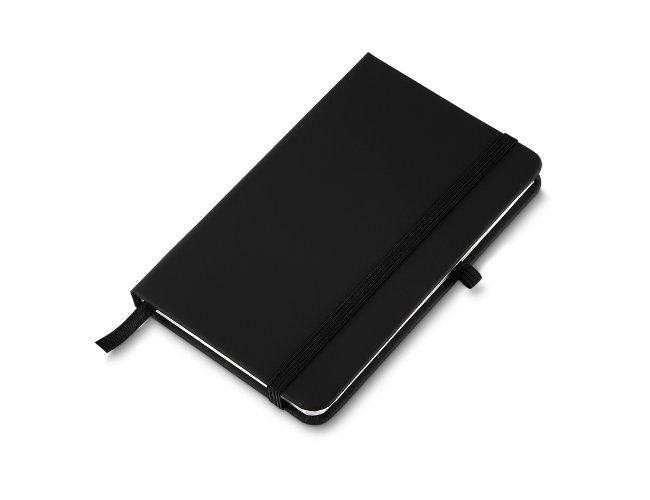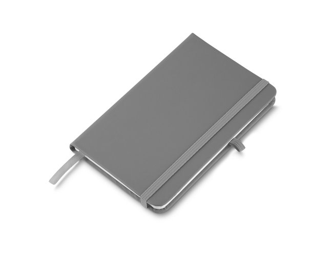 Caderno de anotações com elástico, suporte para caneta, capa dura em material sintético, miolo 80 folhas pautadas cor bege.