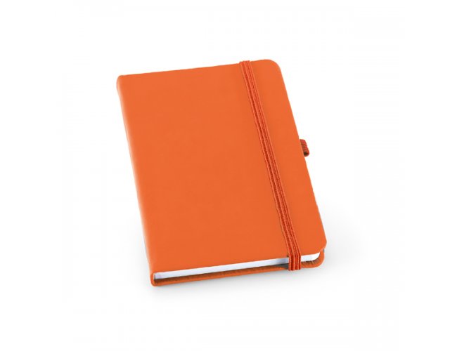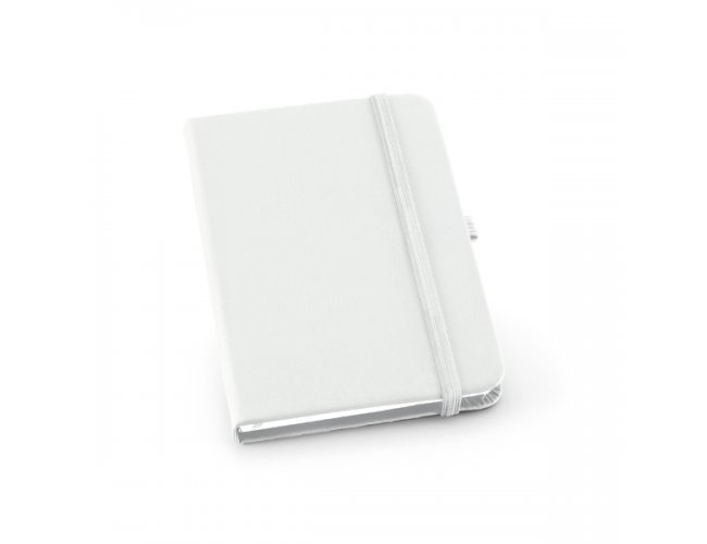 Caderno capa dura em Couro Sintético 93721 Personalizado para Brindes, com a sua logomarca. Com porta esferográfica e 80 folhas pautadas. 90 x 140 mm
