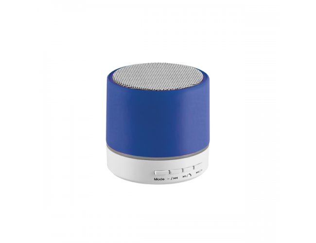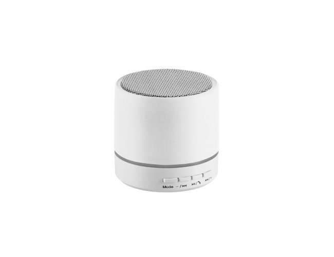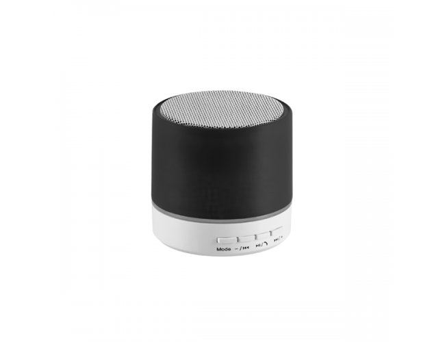 Caixa de som com microfone. ABS. Acabamento em borracha. Com transmissão por bluetooth e leitor de cartões TF. Com 3W/4Ω. Autonomia até 2 h. Função para atender chamadas, controle de volume e conexão à playlist do dispositivo móvel. Incluso cabo USB/micro USB para carregar. ø59 x 55 mm
