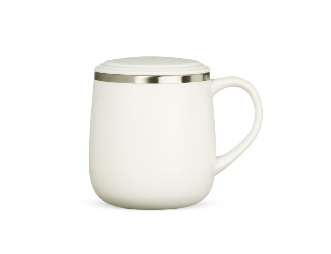 Caneca 370ml parede dupla em Inox, com pegador de plástico, contém tampa plástica para vedação e base com EVA antiderrapante.