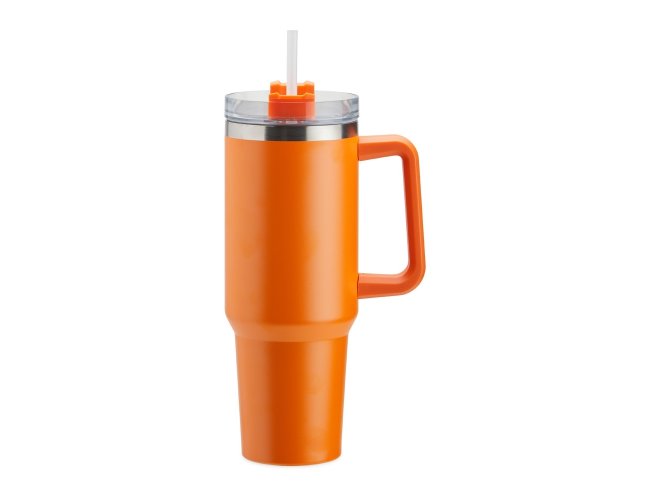 Caneca térmica com capacidade de 1,2 litros feita em inox 304 com parede dupla, contém tampa acrílica rosqueável com acesso para canudo e pegador plástico. Acompanha canudo plástico.