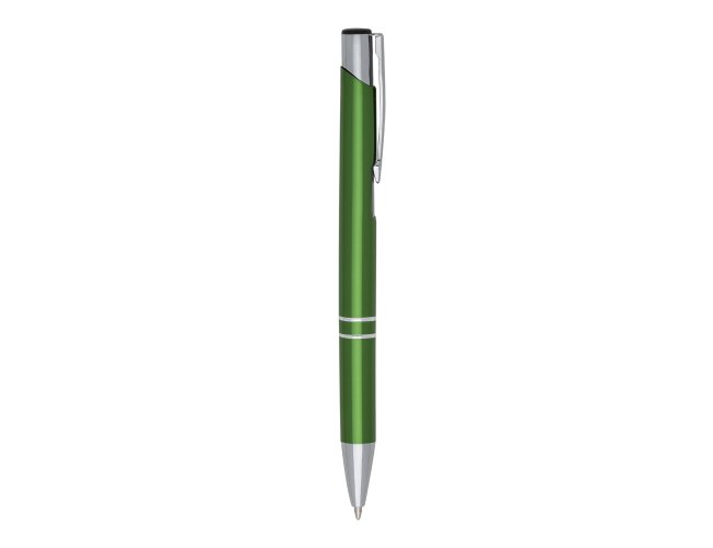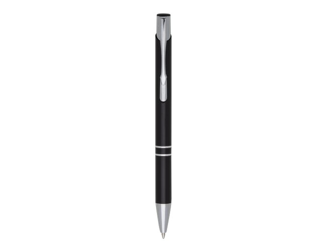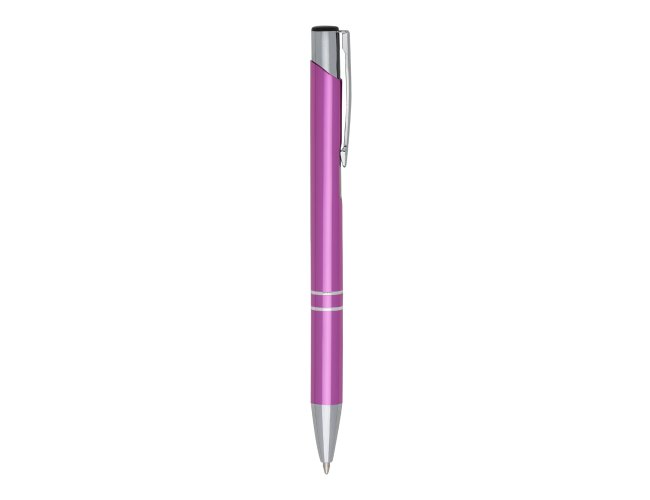 Caneta Metal ER143B inteira colorida com detalhes prata. Clip metal com a ponta do acionador preto, parte inferior com dois anéis prata. Aciona por clique.