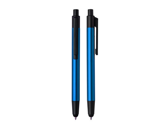 Caneta esferográfica em metal com ponta touch escrita em azul