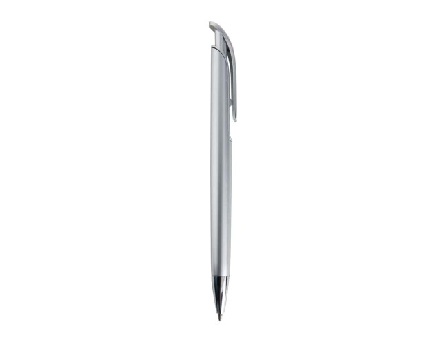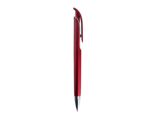 Caneta Plástica na cor colorida fosca com detalhe prata ao redor do clip e na ponteira, Personalizada com a sua logomarca. Aciona por clique. Tamanho total aproximado (CxD): 14,6 cm x 1,4 cm. Peso aproximado (g): 9