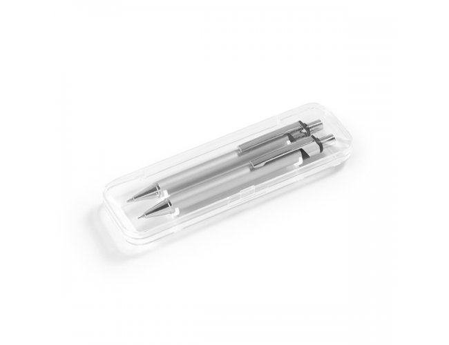 Conjunto de esferográfica e lapiseira em Alumínio. Esferográfica: 1,5km de escrita e está Incluso estojo.