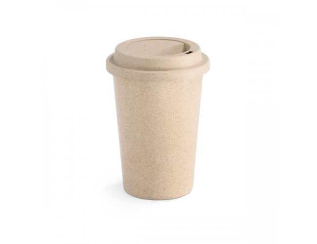Copo para viagem. Fibra de bambu e PP. Com tampa. Capacidade até 450 ml. Food grade. ø93 x 134 mm