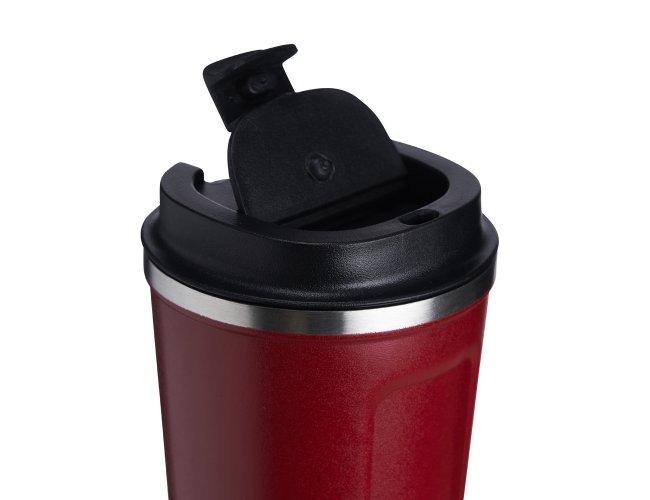 Copo térmico de inox 500ml com parede dupla, parte inferior com borracha antideslizante e tampa rosqueável com abertura de bocal.