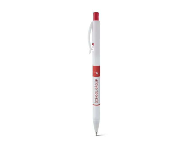 Esferográfica em ABS com acabamento brilhante e mecanismo colorido. Até 1,5 km de escrita. ø9 x 141 mm