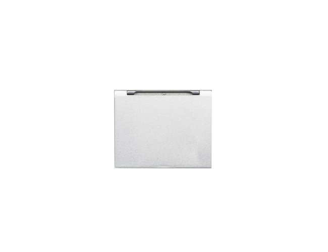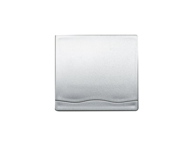 Espelho plástico duplo com aumento. Frente e verso liso porém a parte superior não é plana, possui um detalhe de ondulação.