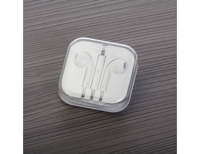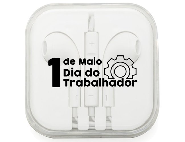Fone de Ouvido Pequeno Personalizado 12789 com a sua logomarca estéreo com microfone e controle de volume. Fone de ouvido plástico na cor branca, entrada P2, possui indicativo L(left) e R(right) na área interna do fone, detalhes internos vazados no fone(possibilita a visão da tela de proteção), microfone acoplado no suporte com desenho indicativo e no verso do suporte controle de volume com desenho indicativo – e +. Acompanha embalagem plástica branca com tampa acrílica transparente.