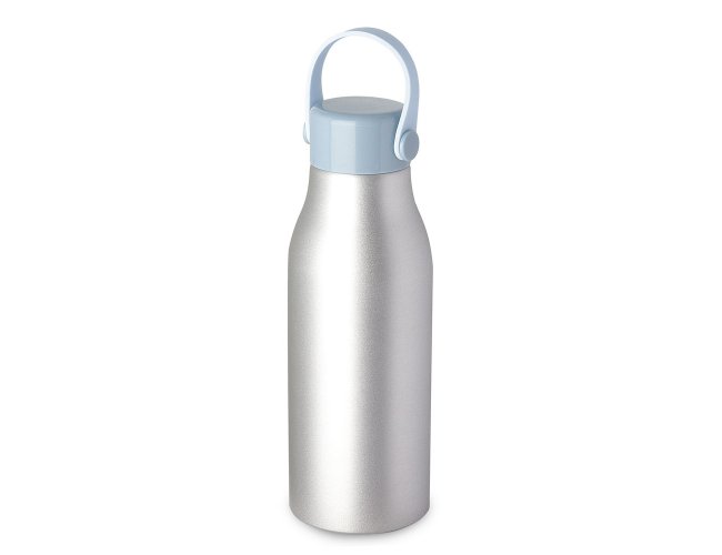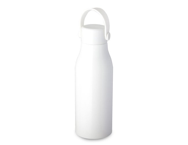 Garrafa em alumínio, tampa em plástico com alça na cor do produto. Capacidade de 550ml, pintura fosca.