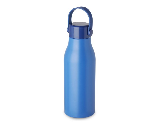 Garrafa em alumínio, tampa em plástico com alça na cor do produto. Capacidade de 550ml, pintura fosca.