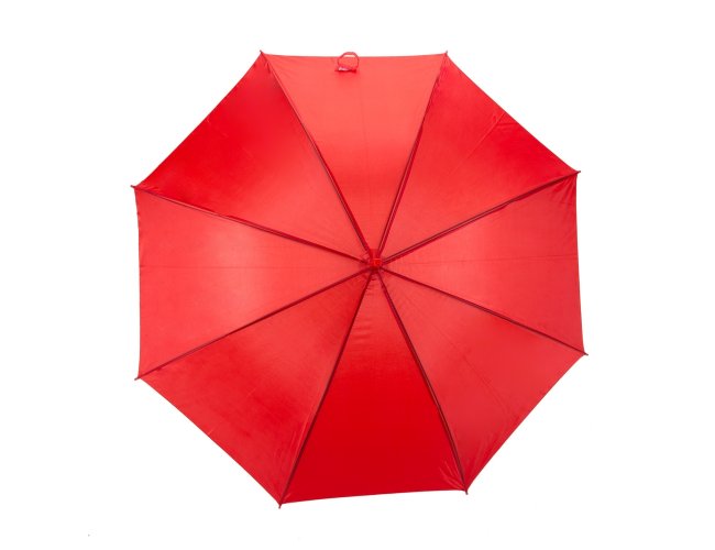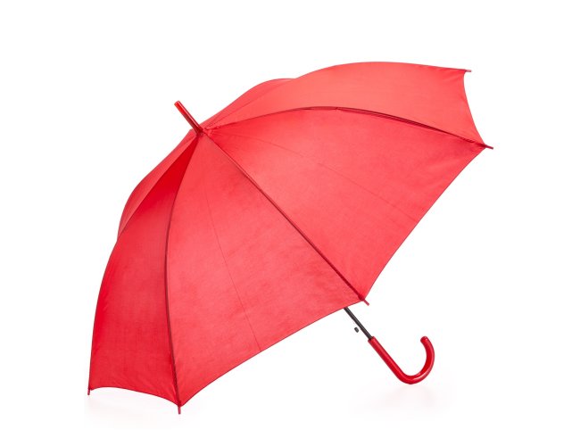 Guarda-chuva colorido com tecido de nylon e abertura automática, basta acionar o botão inferior. Personalizado com a sua logomarca. Possui 8 varetas pretas de aço, pegador e bico superior de plástico. Tamanho total aproximado (CxD): 84,5 cm x 105 cm X 105 cm ABERTO. Peso aproximado (g): 292
