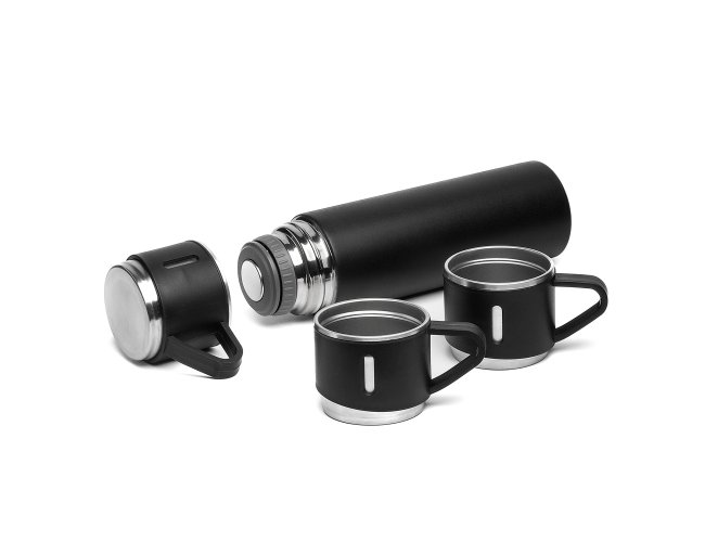 Kit Garrafa e canecas: ideal para cafés, chás e dividir a bebida com mais pessoas.