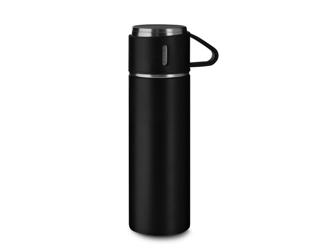 1 garrafa térmica em aço inox com parede dupla isolada a vácuo com capacidade para 500ml;