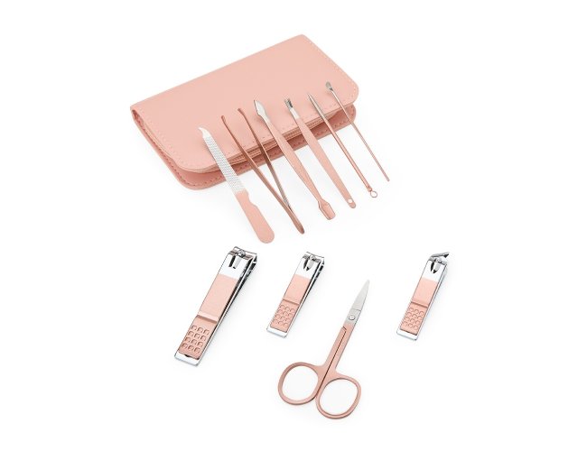 Kit Manicure 10 peças em estojo de couro sintético, perfeito para embelezar e cuidar das unhas, podendo ser usado em casa ou em salões de beleza. Com três cortadores de unha, tesoura, lixa, pinça, empurrador de cutícula, removedor de cutícula, palito de unha e espátula para ouvido, este kit oferece tudo o que precisa para manter as unhas e cuidados sempre em dia.