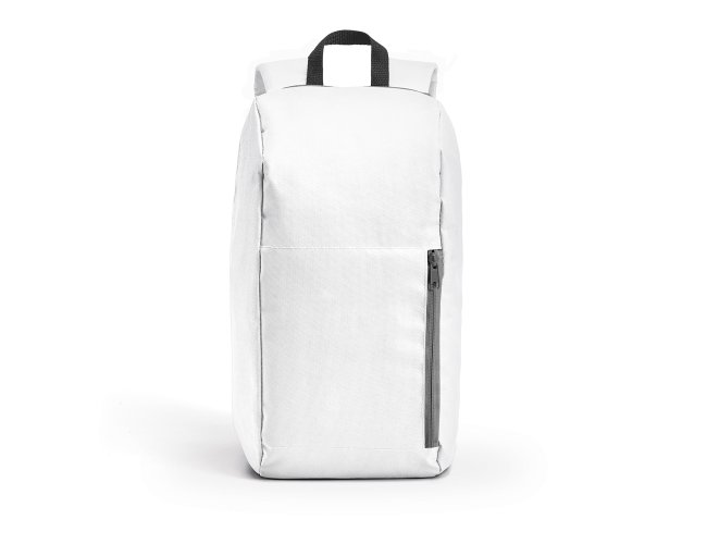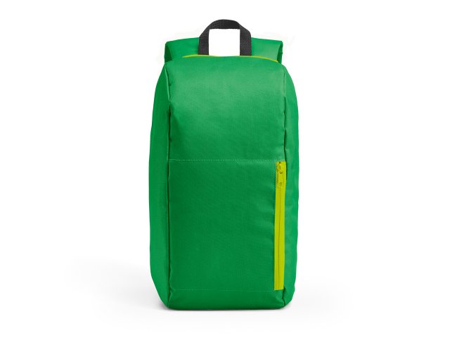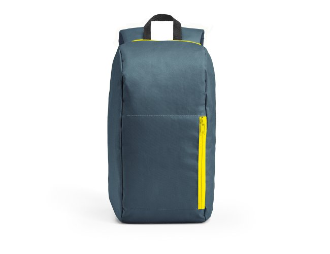 Mochila. 600D. Bolso exterior frontal com zíper. Parte posterior almofadada, com sistema de apoio acolchoado para as costas e alças almofadadas. Dimensões: 245 x 400 x 115 mm.