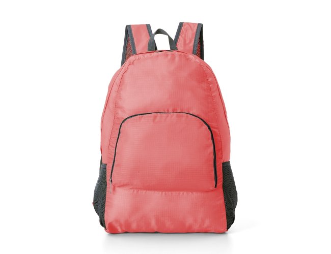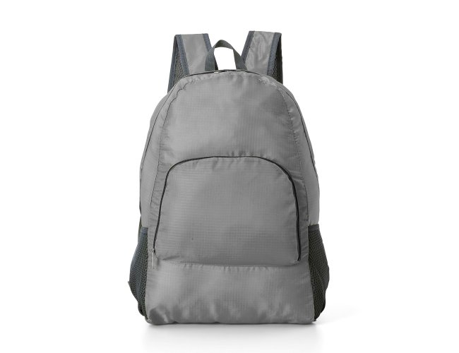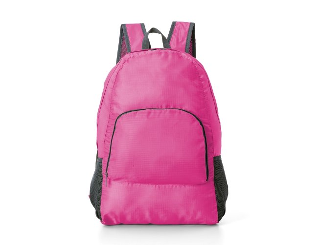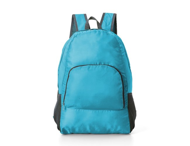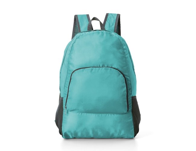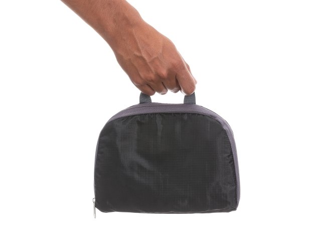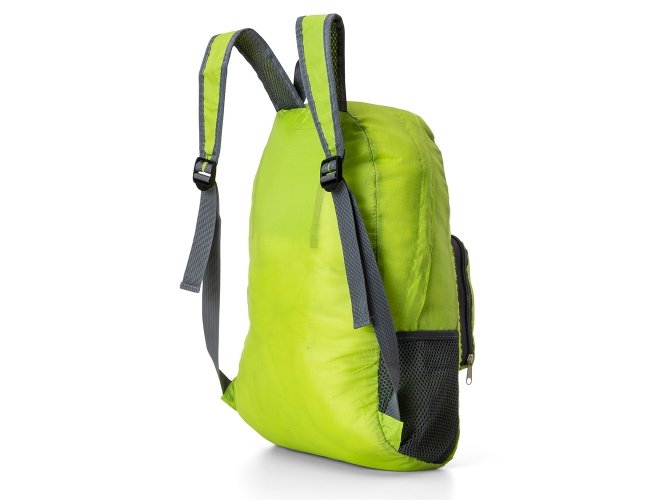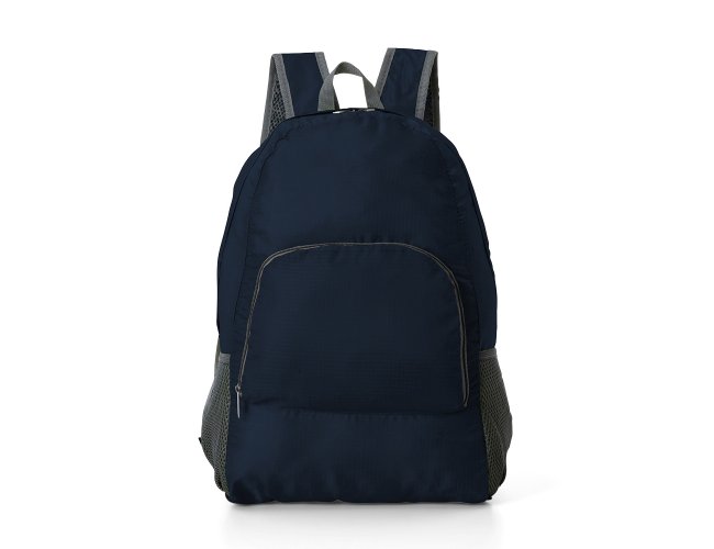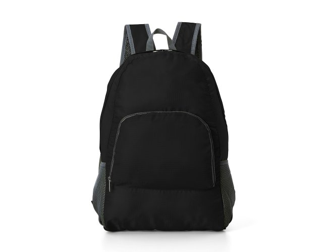 Mochila dobrável de 25 litros confeccionada em nylon impermeável. Compacta e com abertura prática, possui compartimento principal com pequeno bolso interno, bolsos laterais em malha e bolso frontal – compartimento responsável por acomodar a mochila.