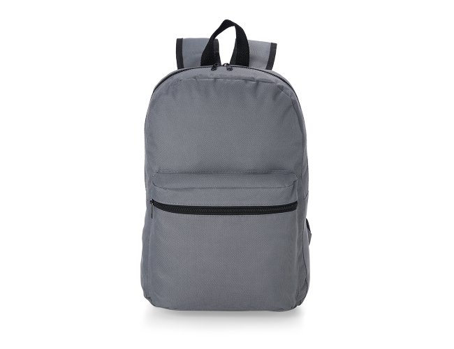 Mochila confeccionada em Nylon 17 Litros. Contém bolso frontal com zíper, alça de mão em nylon e alças para as costas ajustáveis.
