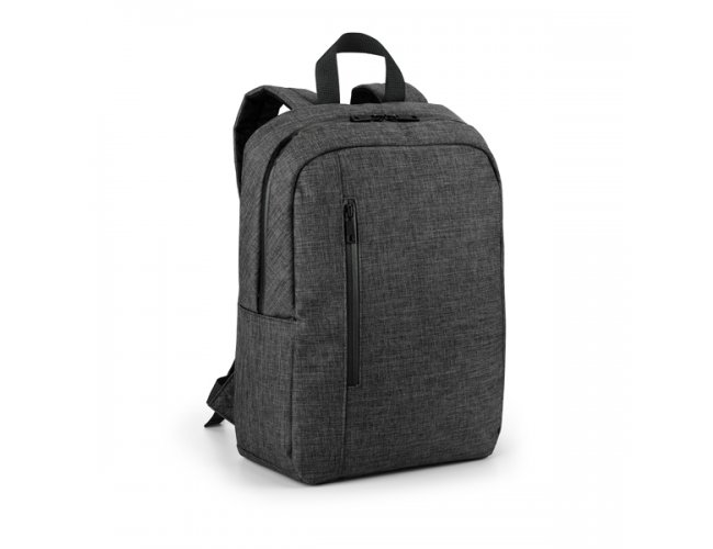 Mochila para notebook. 600D de alta densidade. Compartimento forrado, com 2 divisórias almofadadas para notebook até 14'' e tablet 9.7''. Bolso frontal e 1 bolso lateral. Parte posterior e alças almofadadas. 310 x 400 x 110 mm