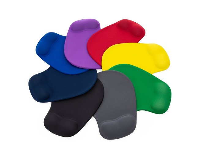 Mouse Pad ergonômico de neoprene com apoio para o punho de espuma. Parte inferior em material antiderrapante, que ajuda a impedir o deslizamento do mouse pad.