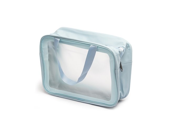 Nécessaire de PVC e PU resistente à água, com duas alças laterais de mão.