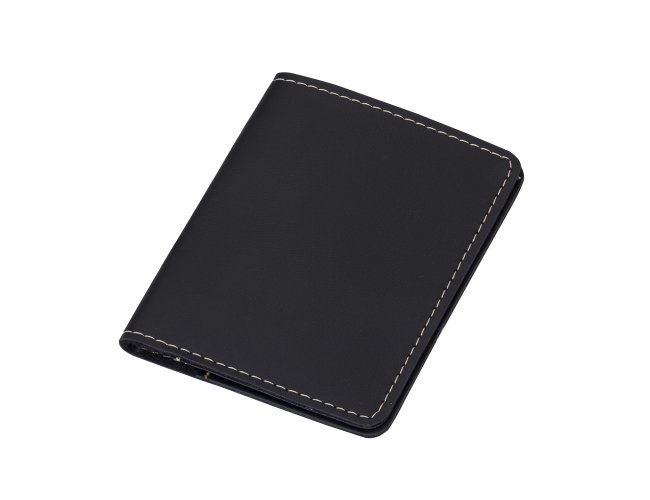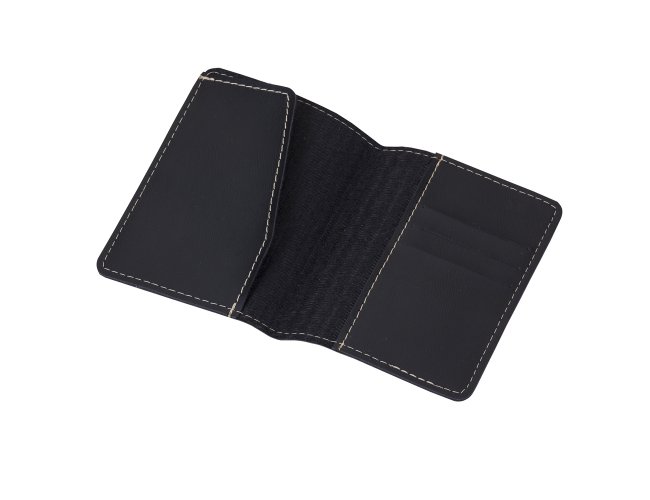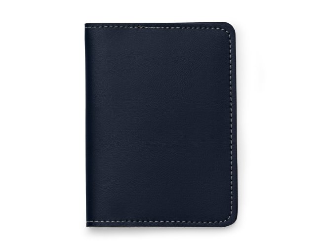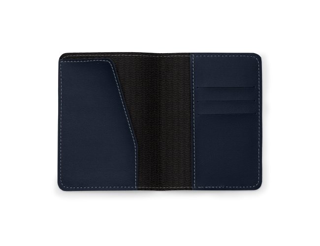 Porta passaporte Bidins em couro sintético, possui três compartimentos na lateral para cartões.