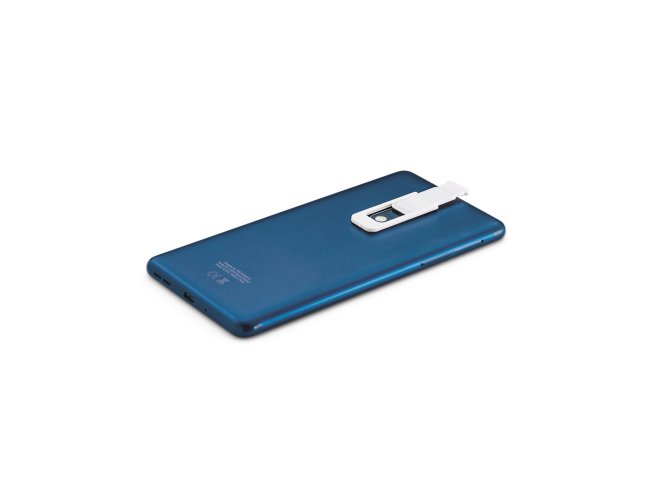 Protetor para webcam em PP com tampa deslizante e autocolante no verso. Formato universal para smartphone, tablet, notebook e computador de secretária. 42 x 17 x 2 mm | Aberto: 65 x 17 x 2 mm