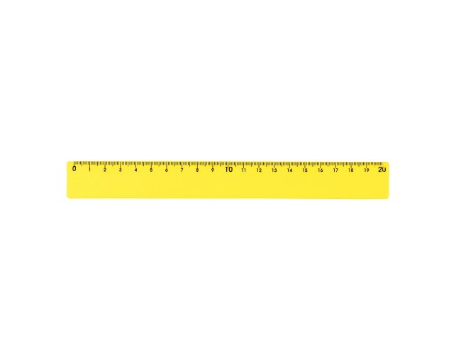 Régua plástica colorida de 20 cm com verso liso.