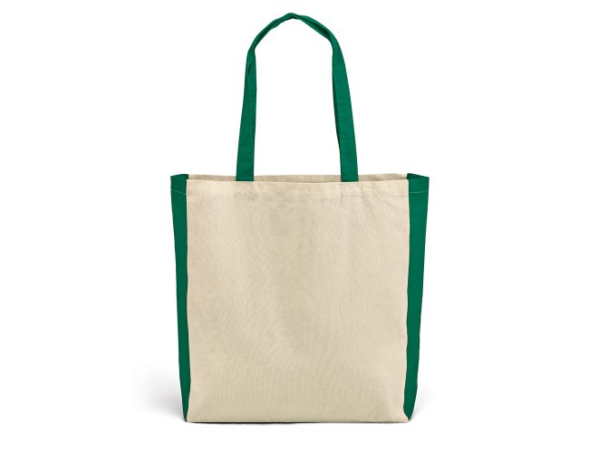 Sacola. 100% algodão: 140 g/m². Alças de 65 cm. Dimensões: 370 x 410 x 100 mm.