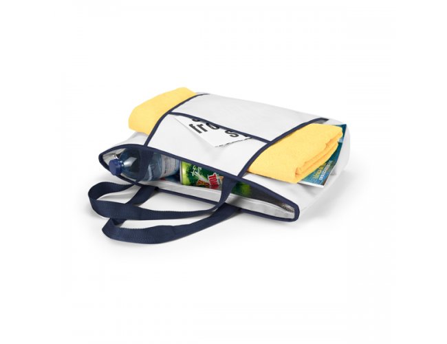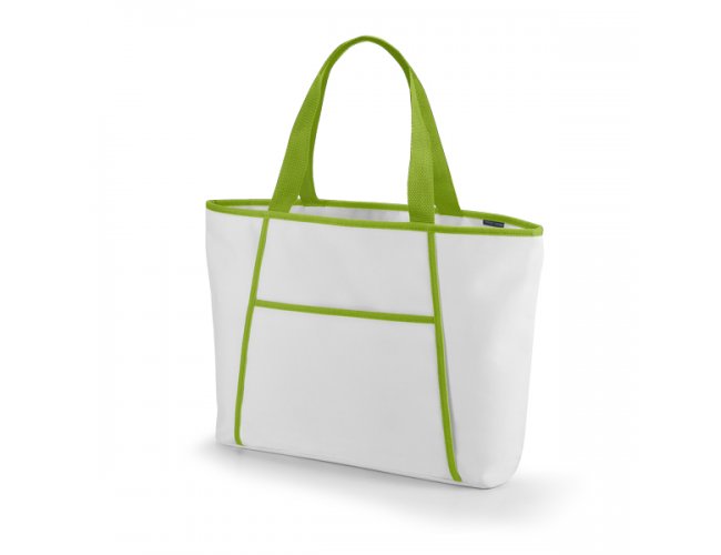 Sacola térmica LOLLA Personalizada 98417 com a sua logomarca. 600D. Fecha com zíper. Compartimento exterior aberto (forrado) com bolso frontal. Alças em webbing de 55 cm. Food grade.