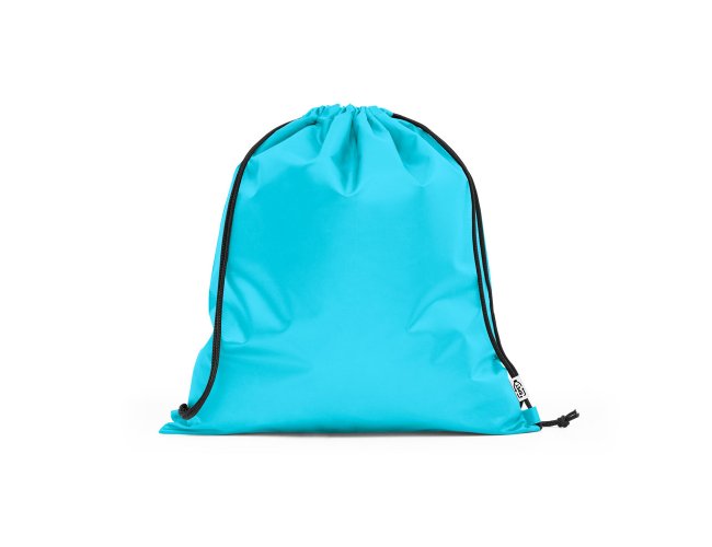 Sacola tipo mochila em rPET 190T. Produzida a partir de plástico reciclado contribuindo para a redução dos resíduos no meio ambiente.