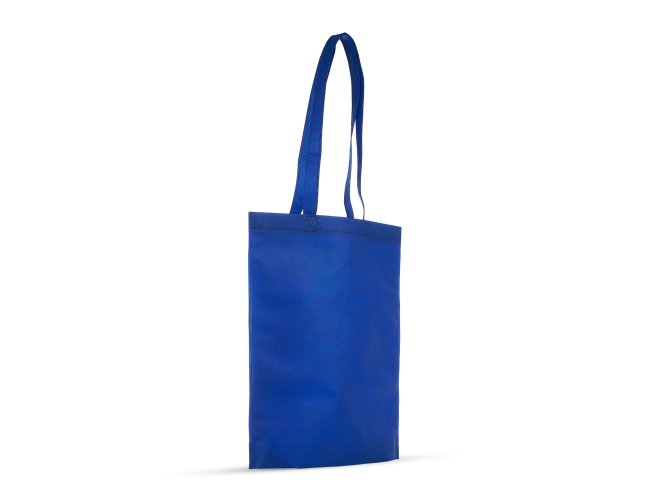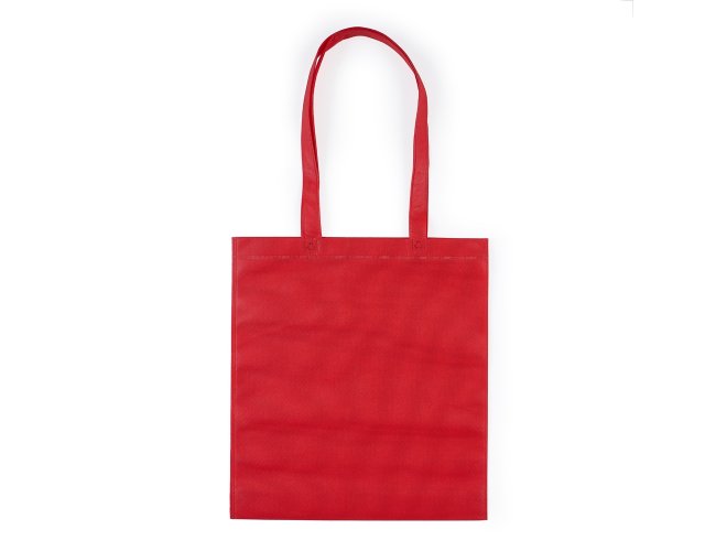 Sacola colorida com alça em material TNT, possui símbolo ecológico/reciclável na costura da alça. Personalizada com a sua logomarca. Tamanho total aproximado (CxD): 41,2 cm x 37,2 cm – Alça 30,5 cm. Peso aproximado (g): 34