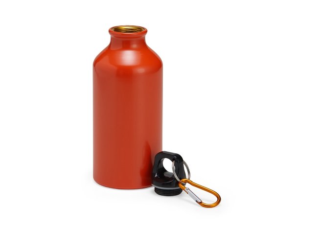 Squeeze de alumínio com capacidade de 420ml com tampa plástica rosqueável. Acompanha mosquetão.