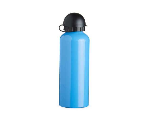 Squeeze 500ml de alumínio com pintura metalizada, tampa rosqueável e acompanha um segundo bico com mosquetão (não é térmico).